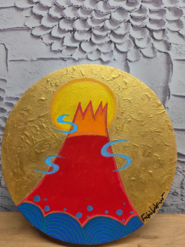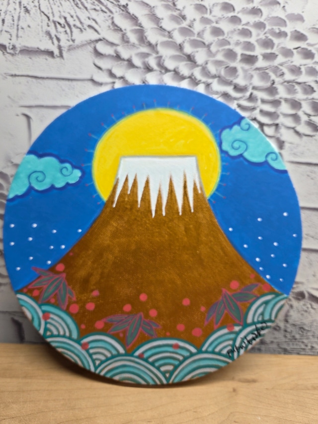 まるいキャンバスです。 サイズ15×15cm 縁起もので元気が出ます。