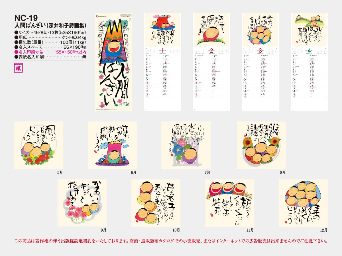 2026年の深井和子詩画集カレンダー「人間ばんざい」